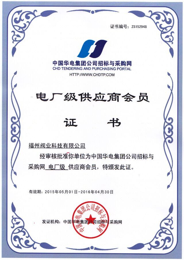 热烈祝贺福州阀业科技有限公司成为中国华电电厂级会员